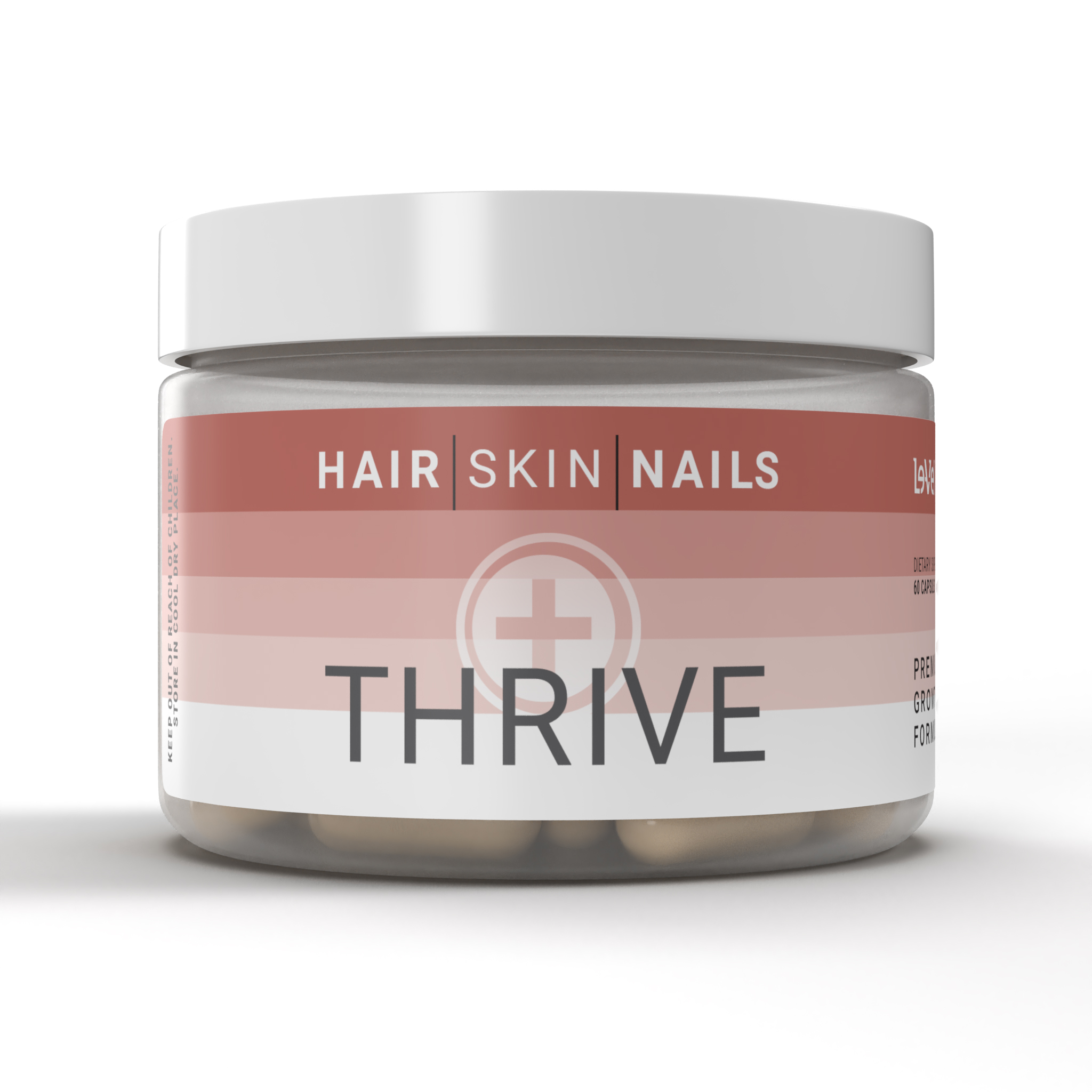 THRIVE Hair, Skin, Nails supplement was formulated with key ingredients like Hydrolyzed Collagen Types I & III and Keratin proven to help support hair and nail growth, joint and bone strength, while also giving you the antioxidant support to help reduce the effects of free radicals on the skin and promote skin health.